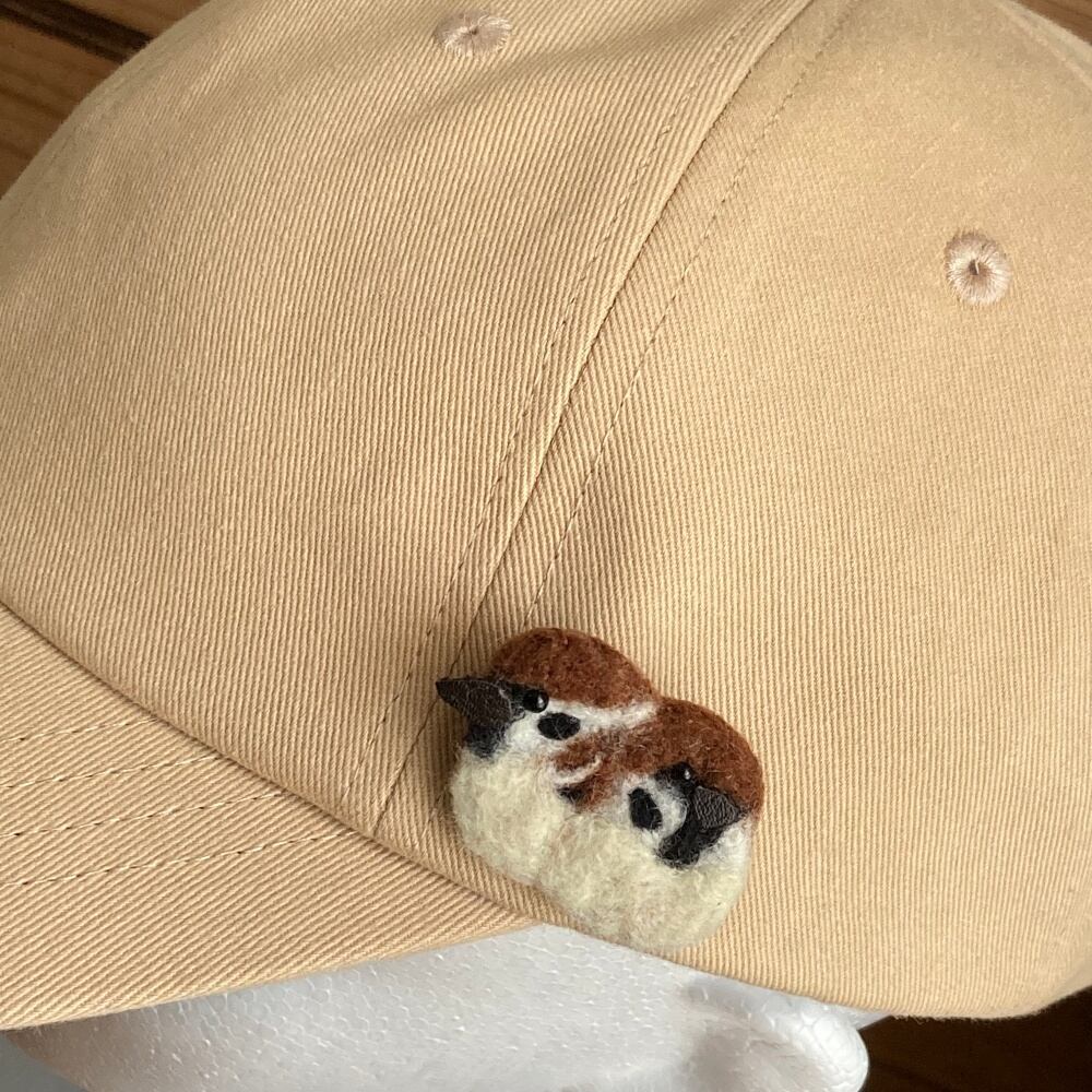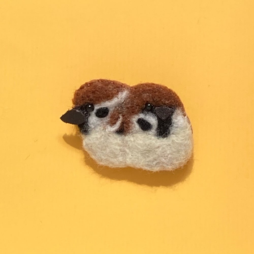 羊毛ならでふわふわ感でモフッとしたスズメを演出しました。