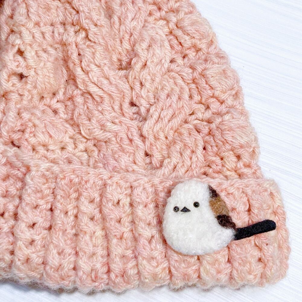 素材/羊毛、フェルト、ブローチピン、革、刺し目
