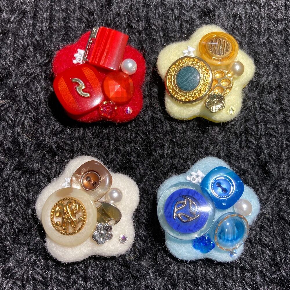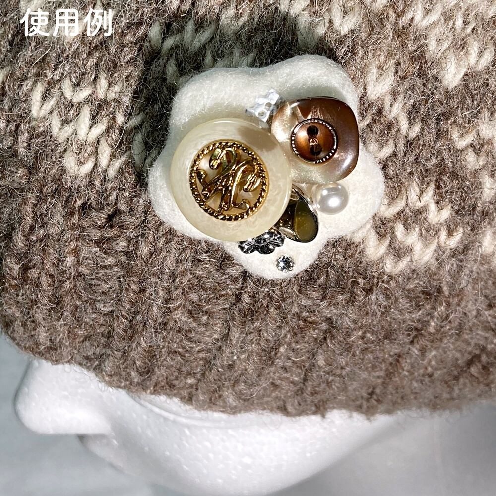 素材/ボタン、羊毛、フェルト厚(裏)、ブローチピン、ビーズ、パールビーズ、スパンコール